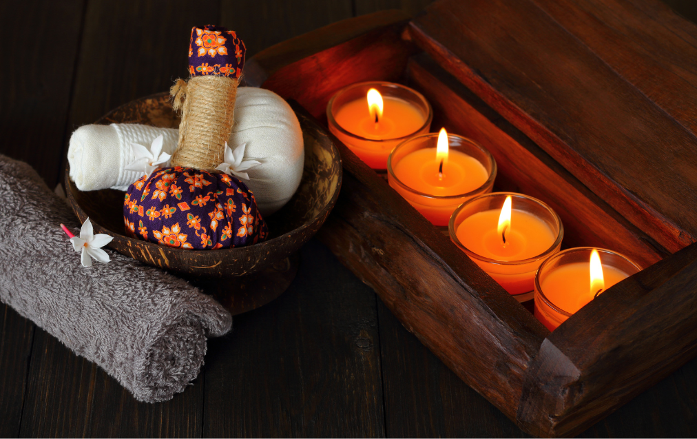 A traditional herbal compress therapy using heated herbs to reduce muscle tension and improve circulation.